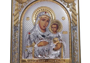 Christian silver orthodox icon, created according to the byzantine art of iconography. The size may vary, due to the handmade manufacturing process.