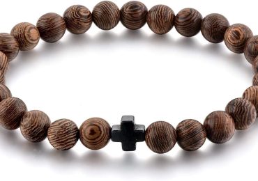 Christian Prayer Beads Bracelet – 25 8MM Wooden Beads & Cross – Adult Men/Women Size!