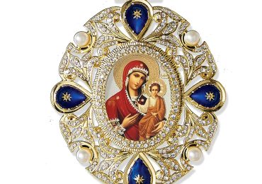 Madonna and Child Room Wall Car Icon Pendant Religious Catholic Orthodox Christian Icon 7 Inch, Saint Mary, Blue Frame