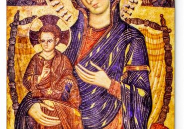 Madonna & Child Enthroned, Wooden Catholic Icon Magnet with Stand, Orthodox Religious Fridge Magnet with Plastic Easel Stand, Christian & Catholic Portrait for Home, Office, & Church Décor