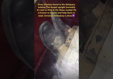 Osios Visarion found in His Reliquary holding The Gospel upright & His Shoes muddy