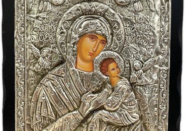 Metallic and Wooden Greek Orthodox icon of Virgin Mary Sweetness of Angels, Length:24CM or 9.4 IN Width:19CM or 7.4 IN.The images are created in Continue Reading
