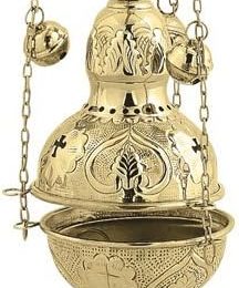 High quality new/unused 4 chain Brass Thurible censer for Liturgical use. Beautiful Greek Russian style brass censer with 12 bells that symbolize the Twelve Continue Reading